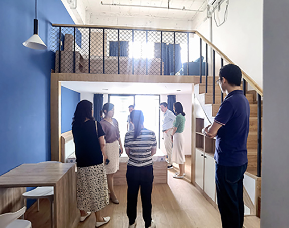 谢华友副局长一行参观了公寓内的休闲娱乐区、联合办公区、公寓房间、露天阳台等功能区,听取了琥珀租赁及优乐公寓基本情况汇报,并详细询问了优乐公寓的运营管理、系统使用、自有平台与市租赁平台对接现状及新项目的工作进展等情况,对优乐公寓三孝口店的产品品质、运营服务水平表示高度认可,同时对琥珀租赁的发展提出殷切期望。