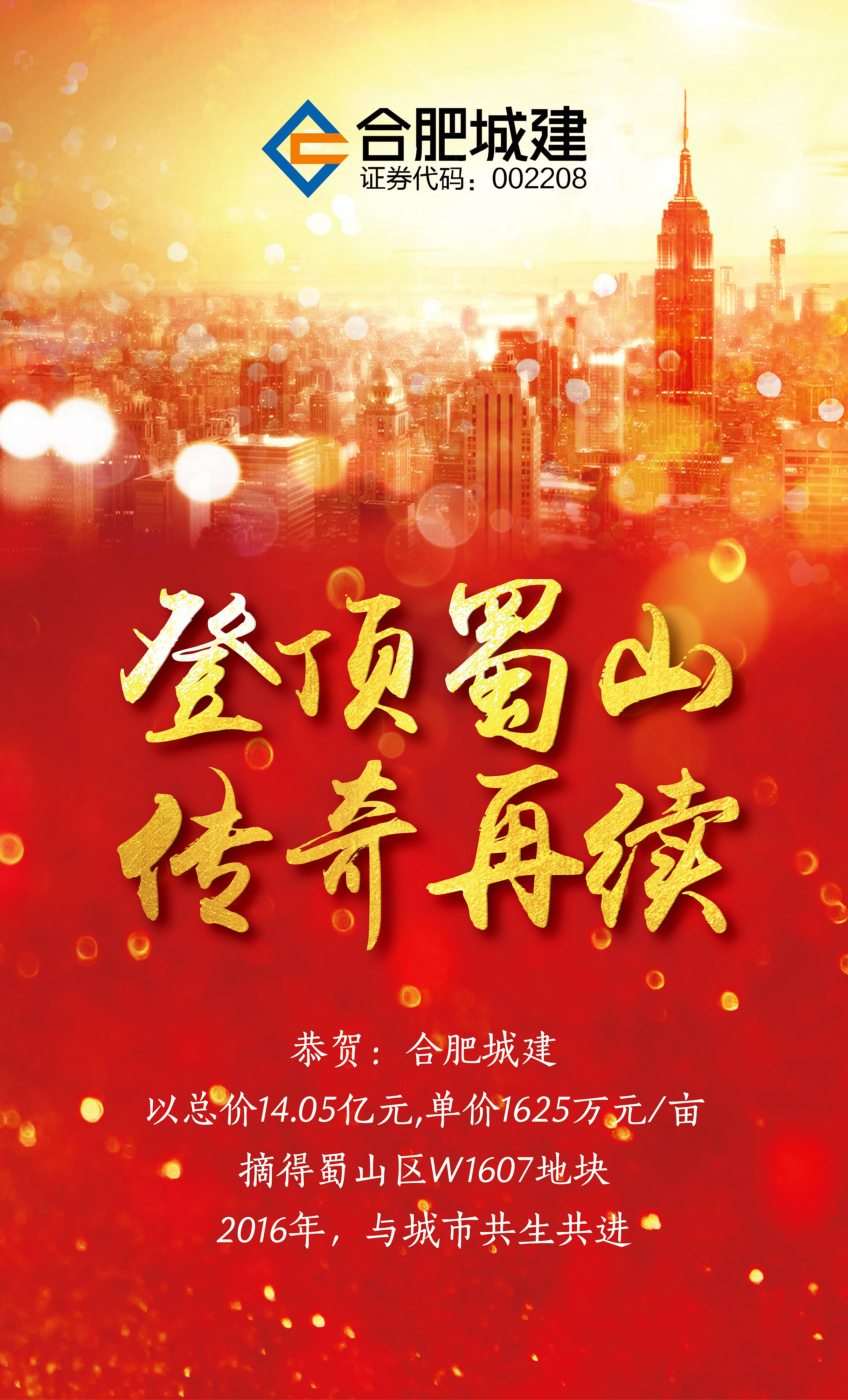 热烈祝贺必赢bwin线路检测中心竞得瑶海区E-1606号宗地 2016年6月29日,备受瞩目的合肥市首次土地网拍于当日下午3时拉开大幕,我公司再度发力,最终以成交单价1665万元/亩,总价20.19亿元,成功竞得瑶海区E-1606号地块。这是公司布局合肥版图的又一重大举措。 本次竞得地块面积121.29亩,座落于半塔路与襄水路交口,是瑶海版块...