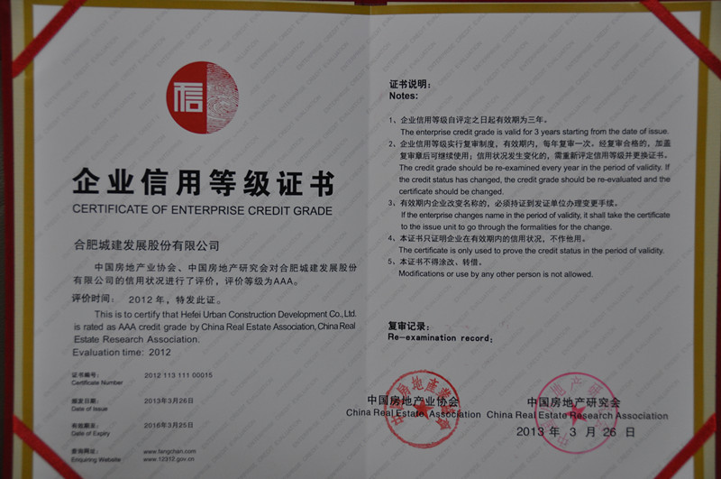 4月27日,中国房地产研究会、中国房地产业协会在山东潍坊召开会议,向全国48家房地产开发企业颁发行业信用评价匾牌和证书,必赢bwin线路检测中心首获AAA级信用评价等级证书,也是全省唯一获得AAA级证书的房地产开发企业。 经商务部信用工作办公室、国务院国资委行业协会联合办公室批准,中国房地产业协会、中国...